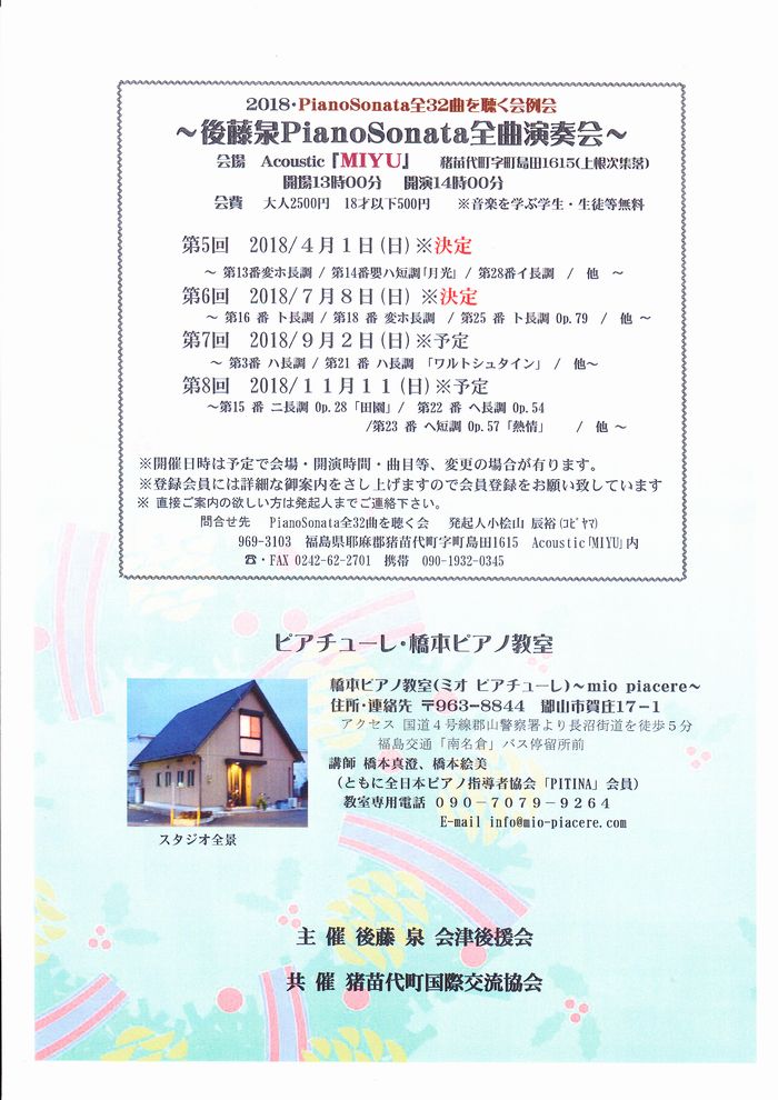 ● 「第5回 Beethoven Piano Sonataを聴く会」のご案内