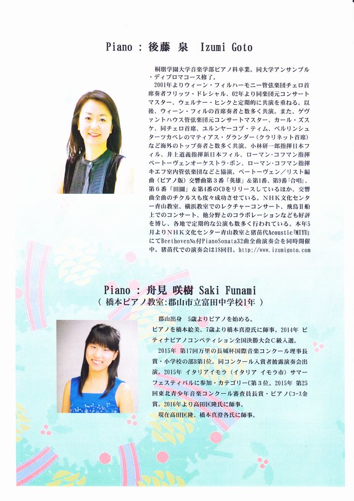 当教室講師、橋本絵美がピアノ伴奏で出演しますので、応援宜しくおねがいします。