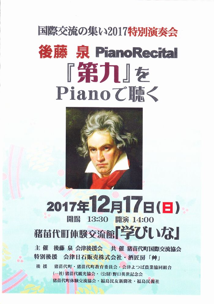 ・ 2017年12月17日 ピアニスト後藤泉さんのピアノリサイタルが開催されました。 素晴らしい演奏会でした。