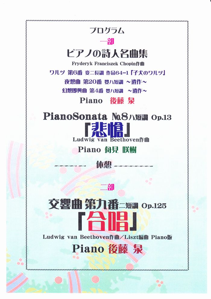 (日程:4月1日 ピアノ今井光星 / 7月8日 ピアノデュオ花憐団)